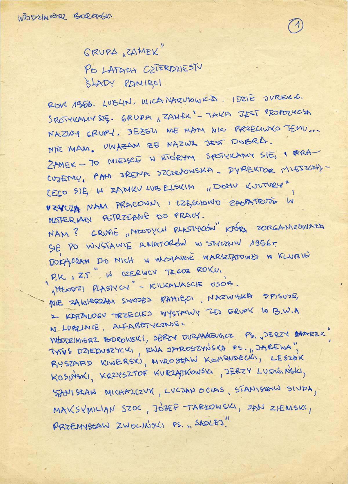 Włodzimierz Borowski's text "Grupa Zamek po latach czterdziestu. Ślady pamięci", Brwinów 10.05.1996