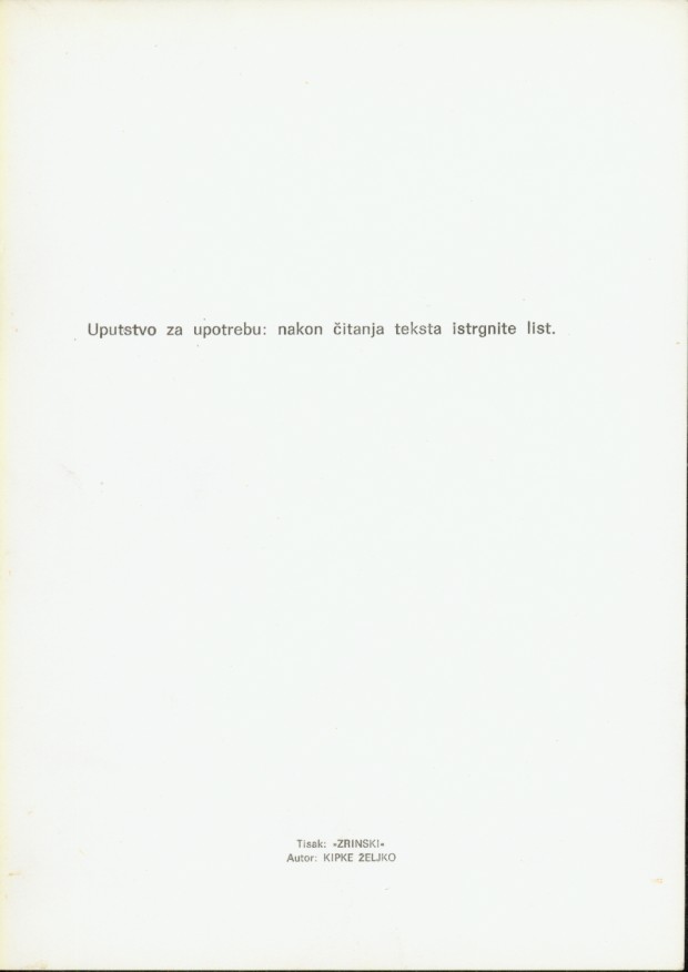 • Uputstvo za upotrebu: nakon čitanja teksta istrgnite list., 1979