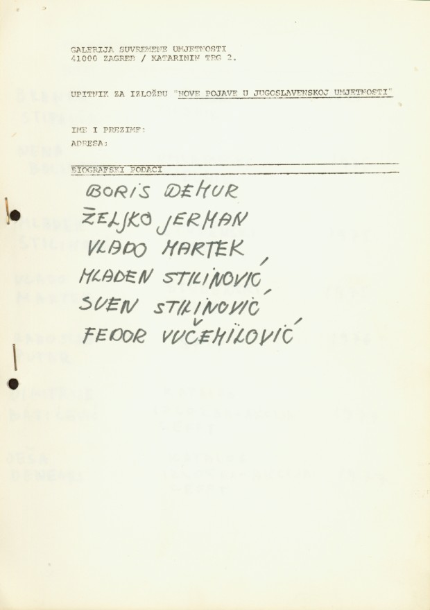 Boris Demur, Željko Jerman, Vlado Martek, Sven Stilinović, Mladen Stilinović, Fedor Vučemilović