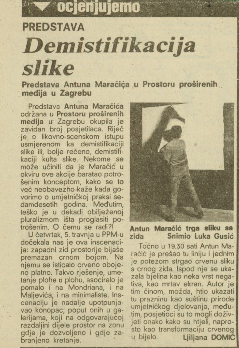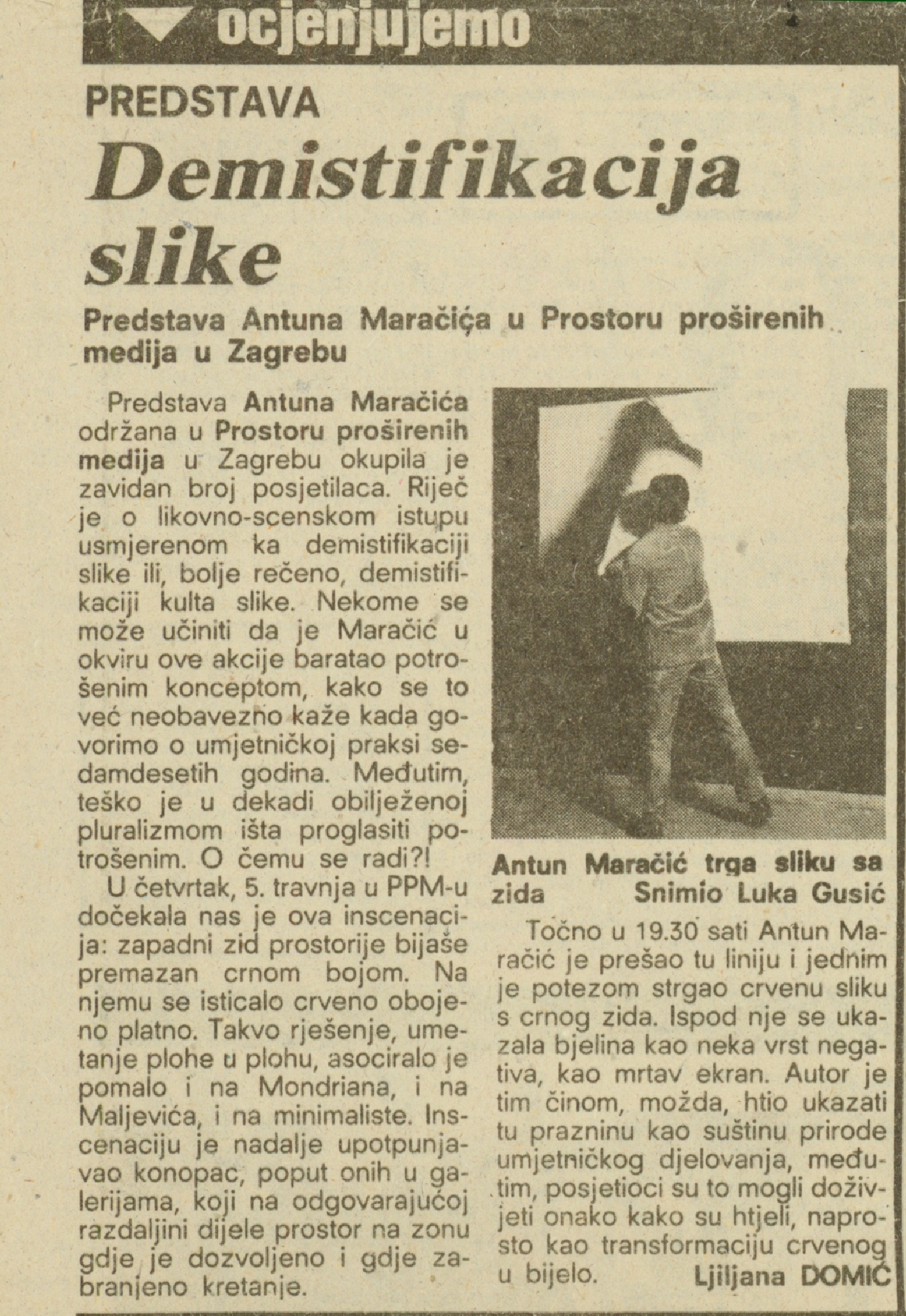 article "Demistifikacija slike" by Ljiljana Domić in Vjesnik, page 11